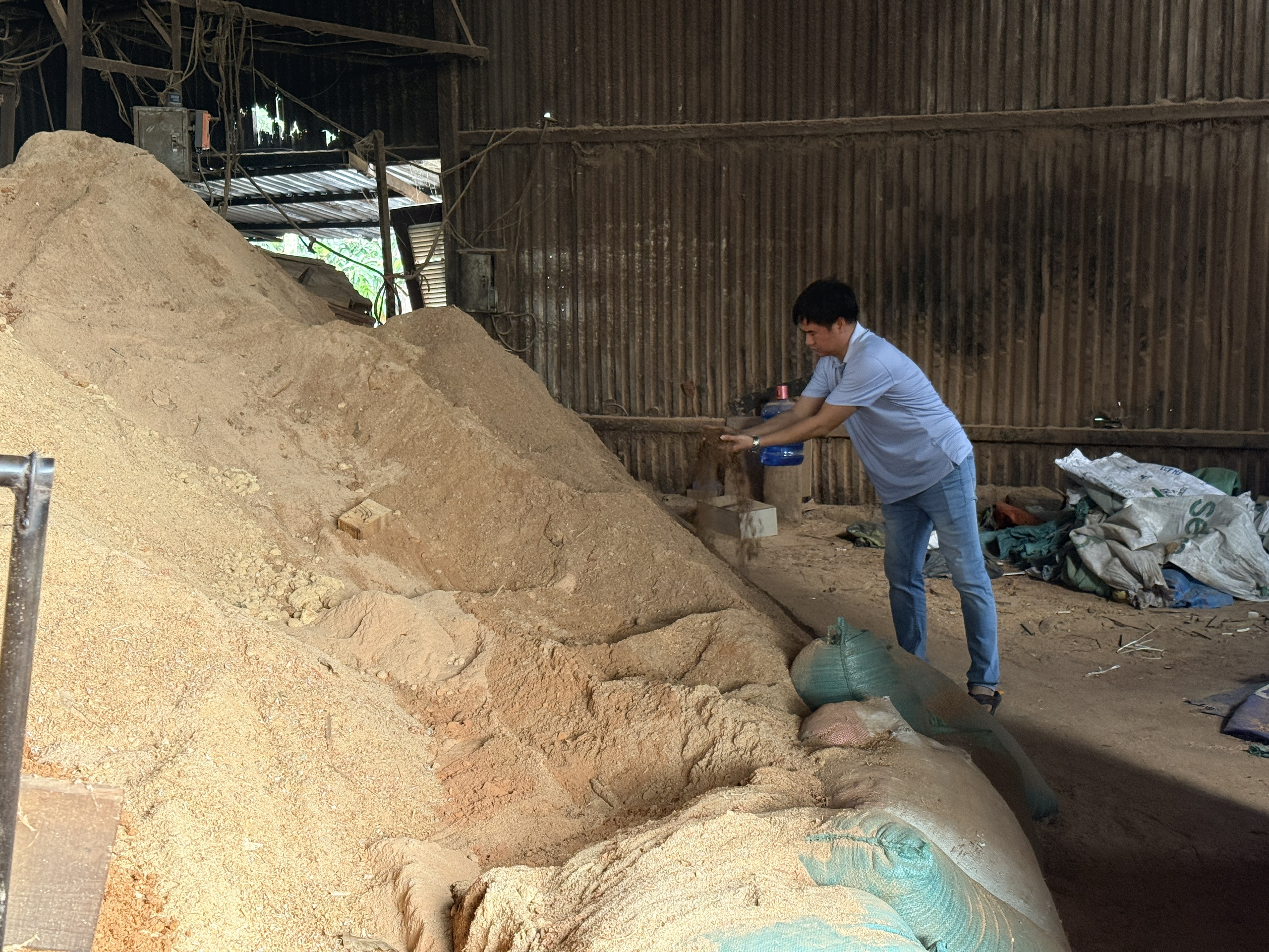 Mùn cưa được kiểm tra, loại bỏ tạp chất