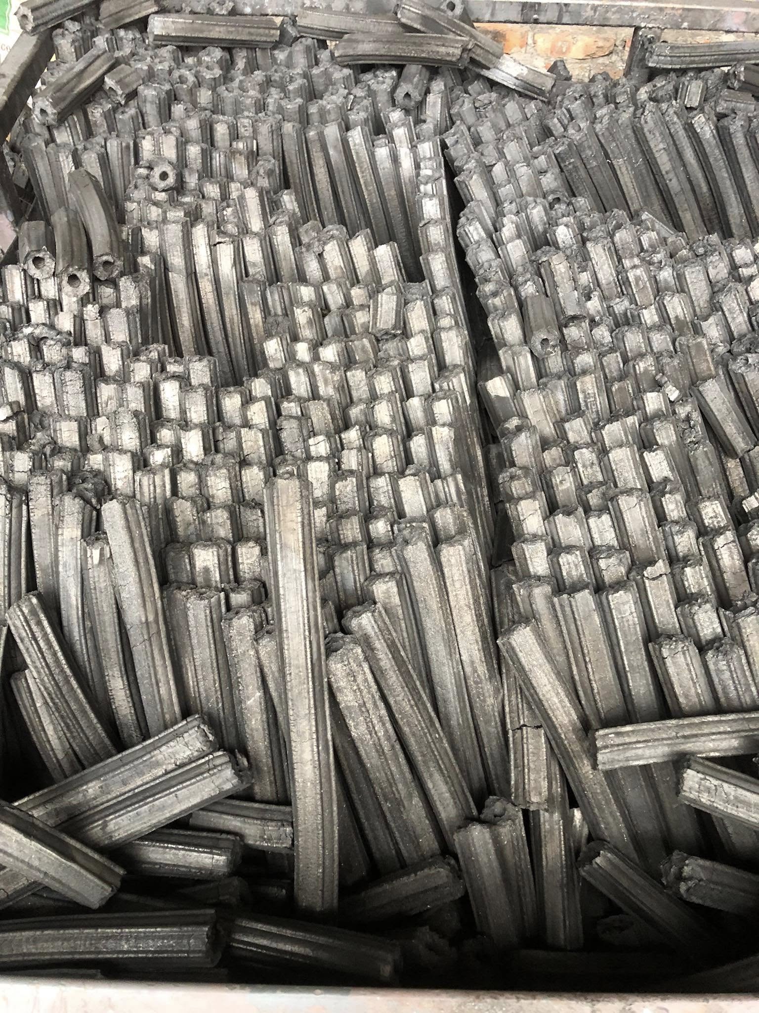 – Than mùn cưa được làm từ mùn cưa gỗ, trải qua quá trình sàng lọc rác, tạp chất, sấy khô, rồi cho qua máy ép trục vít có gia nhiệt. Sau khi được nén ép thành phôi, sẽ được nung than hóa ở nhiệt độ 700-800 độ C để tăng lượng các bon lên đến 90% và loại bỏ toàn bộ các chất độc hại trong khoảng 10 ngày và để nguội tự nhiên khoảng 2 ngày. Than mùn cưa được làm bởi quy trình này không mùi, không khói, không bụi.